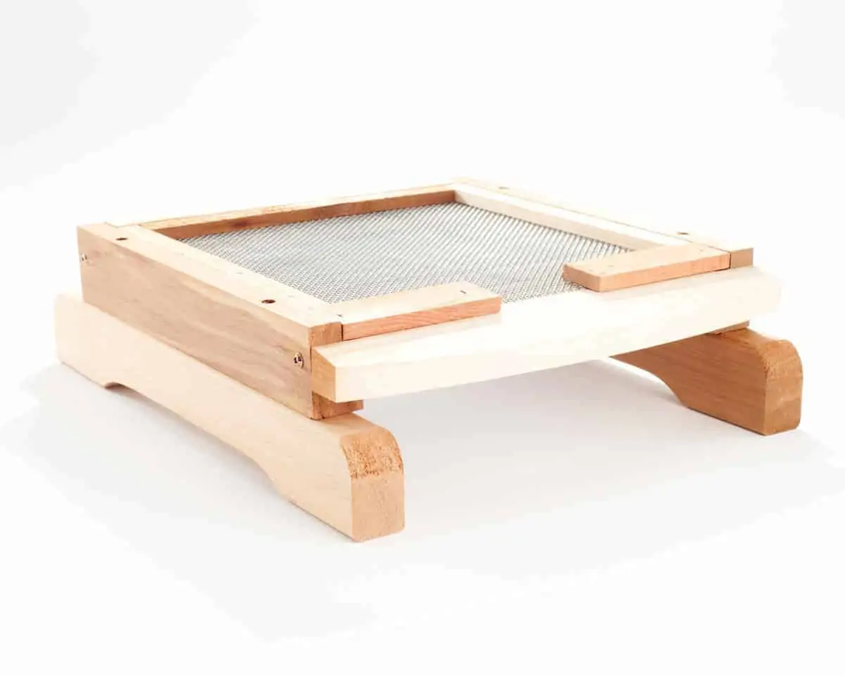 A bottom board is part of the base and Warre hives can be purchased with optional legs, to raise it off the ground.