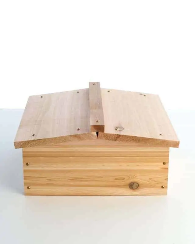To aid in insulation and moisture control, the roof of the Warre hive is made from thicker wood than the roofs of Langstroth hives.